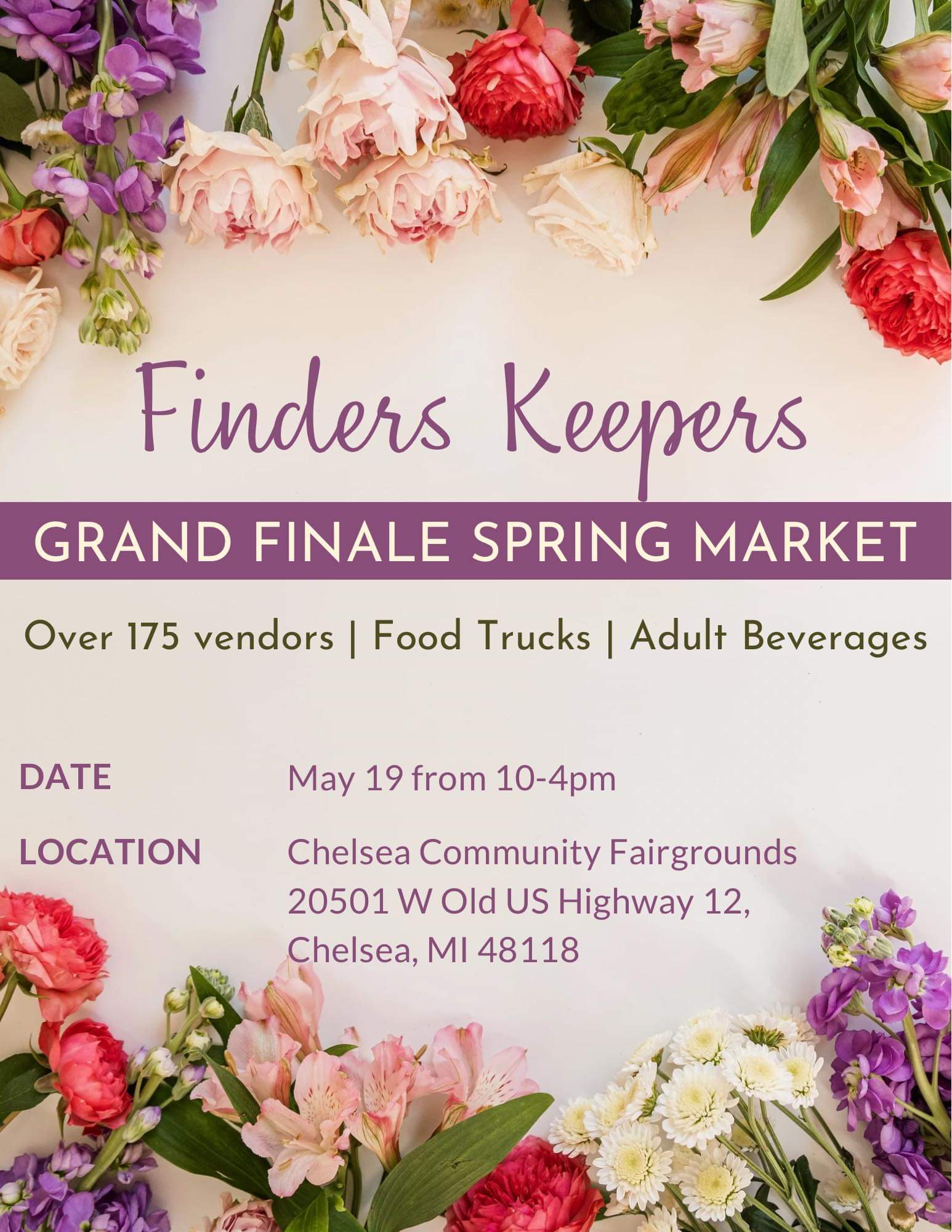 EventsFinders Keepers Spring Market – May 19, 2024 We would love to see you in Chelsea, Michigan on May 19th. We will be bringing handcrafted items, upcycled small furniture, and specially curated vintage items. Share this: Share on X (Opens in new window) X Share on Facebook (Opens in new window) Facebook Like Loading... Related