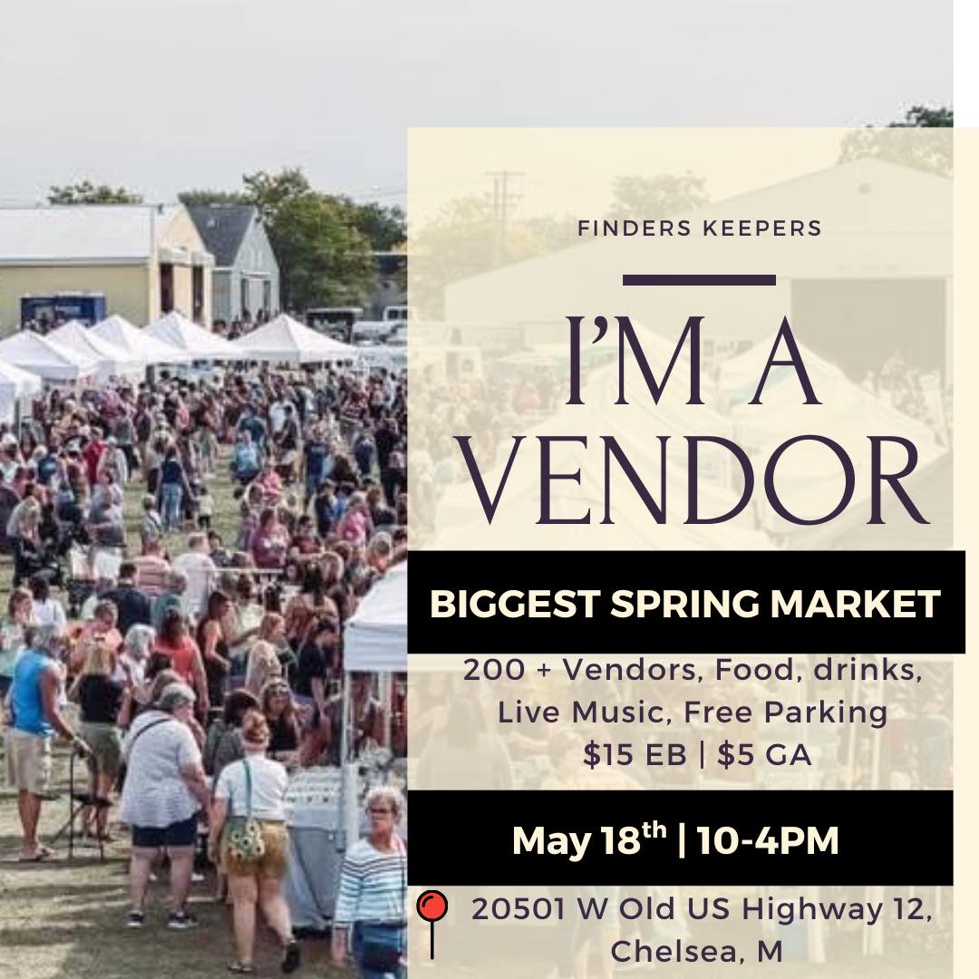 Looking forward to our first show of the 2025 Season. We will be at the Finders Keepers Vintage Market in Chelsea, Michigan on May 18th. Stop by our booth for Vintage McCoy Pottery, upcycled small furniture, original artwork, and spring/summer garden decor.